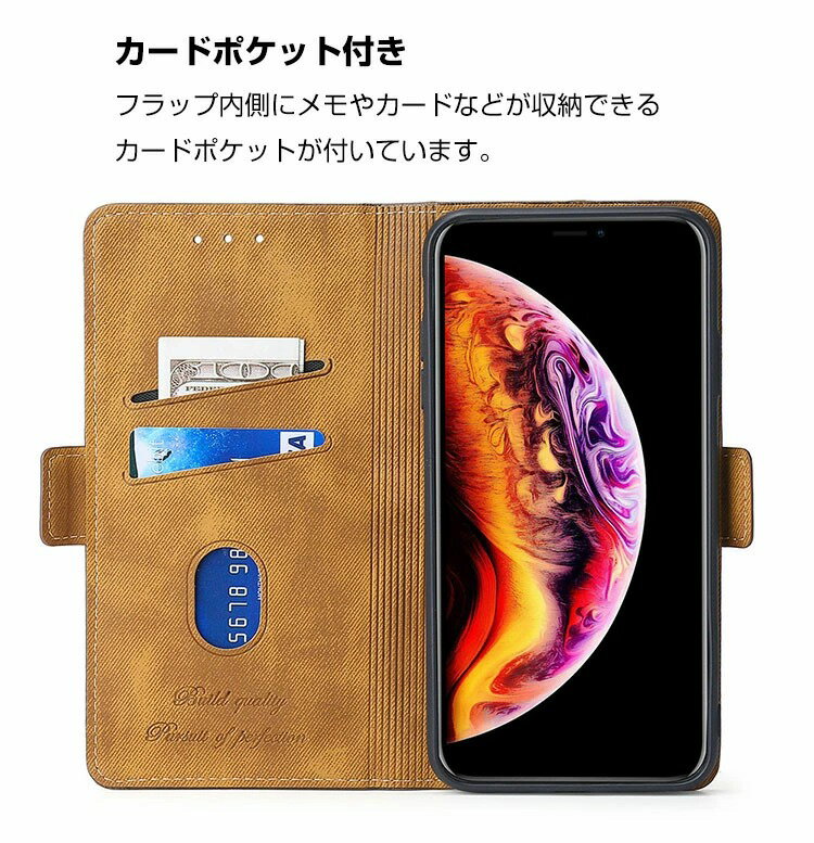 【スタンド機能・カードポケット】横置きスタンド機能が付いて、好きな角度で動画鑑賞や読書などを楽しめます、財布型ケースとして、名刺やお札などを入れるカードポケットがつき、日常生活に便利です。