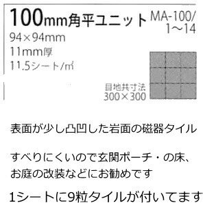 磁器床タイル 100角 MA シートの説明 滑りにくい、表面に細かな凹凸がある仕様です。