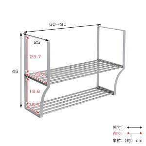 吊戸棚下収納 吊り戸下収納 伸縮式 ねじ止めタイプ 幅60〜90cm 2段 ステンレス製 組立式 ( 送料無料 水切り棚 キッチン 水切りラック 収納 吊り戸棚下収納 吊戸下収納 パイプ棚 伸縮タイプ 幅調節可能 )【3980円以上送料無料】