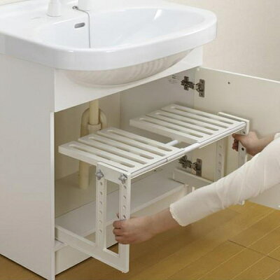 洗面下フリーラック 伸縮タイプ ( 洗面所 収納棚 シンク下 収納 洗面台 キッチン シンク下収納 伸縮式 キッチンラック 排水管 排水管避け パイプ パイプ避け 給水管 給水管避け シンク下ラック )