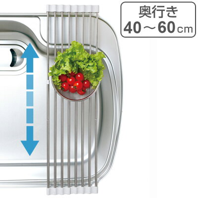 スライドラック 伸縮タイプ たためるシンクラック 奥行き40〜60cm ( 水切りトレー シンクラック 水切りラック 折り畳み水切りラック ディッシュラック シンク上 シンク用品 キッチン用品 キッチン雑貨 )【3980円以上送料無料】
