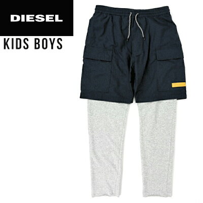 ◆DIESEL KID ディーゼルキッズ ジュニア ボーイ◆重ね着風 レイヤード ハーフパンツ 子供服 男の子 レギンスパンツ【PALLAS】【SIZE10〜14】【ネイビー×グレー】dik-m-p-a4-114 《メーカー希望小売価格16,280円》